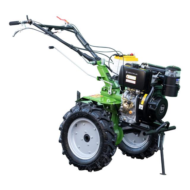 Дизельний мотоблок Кентавр призначений для виконання всіх різновидів робіт на городі або фермерському полі: посадка, прибирання, окучування рослин, запахування ґрунту, перевезення вантажів. За допомогою вала відбору потужності мотоблок агрегатується з різними типами навісного обладнання: активна фреза, помпа, косарка тощо.