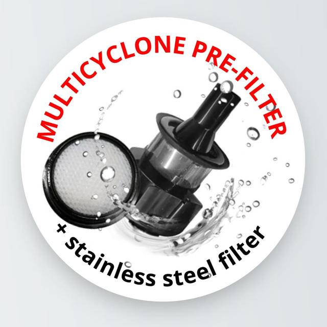 Фільтр Hepa захищає двигун від сміття, а під час роботи вловлює навіть найдрібніші частинки. Фільтр знімний, для очищення досить промити проточною водою.